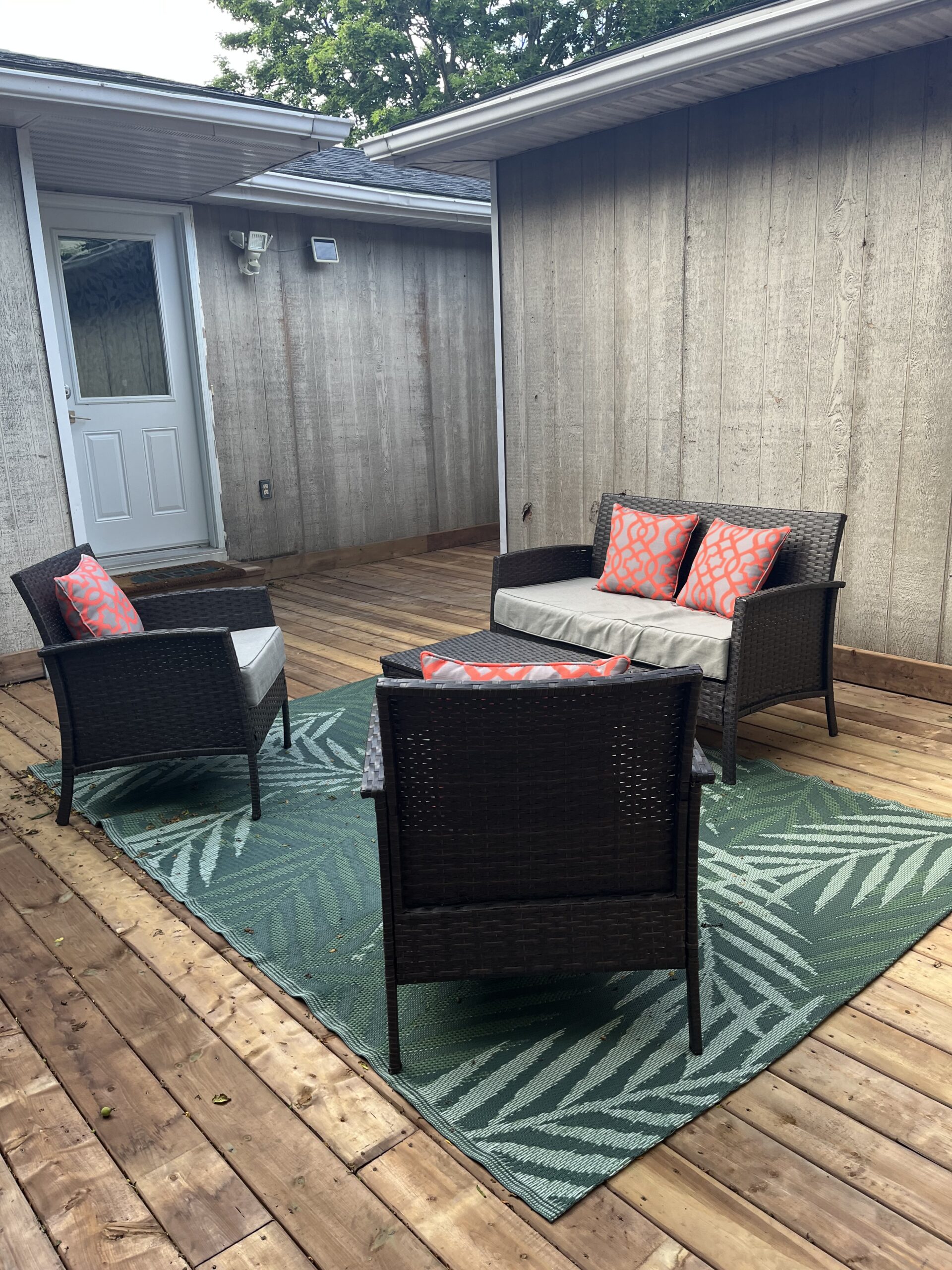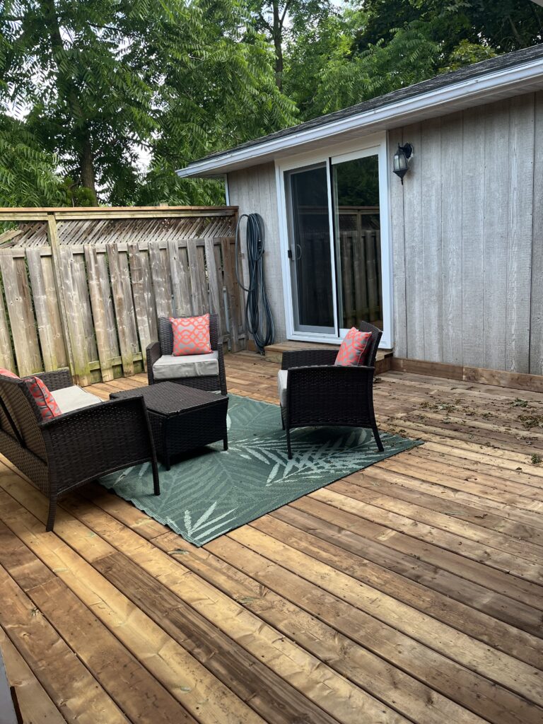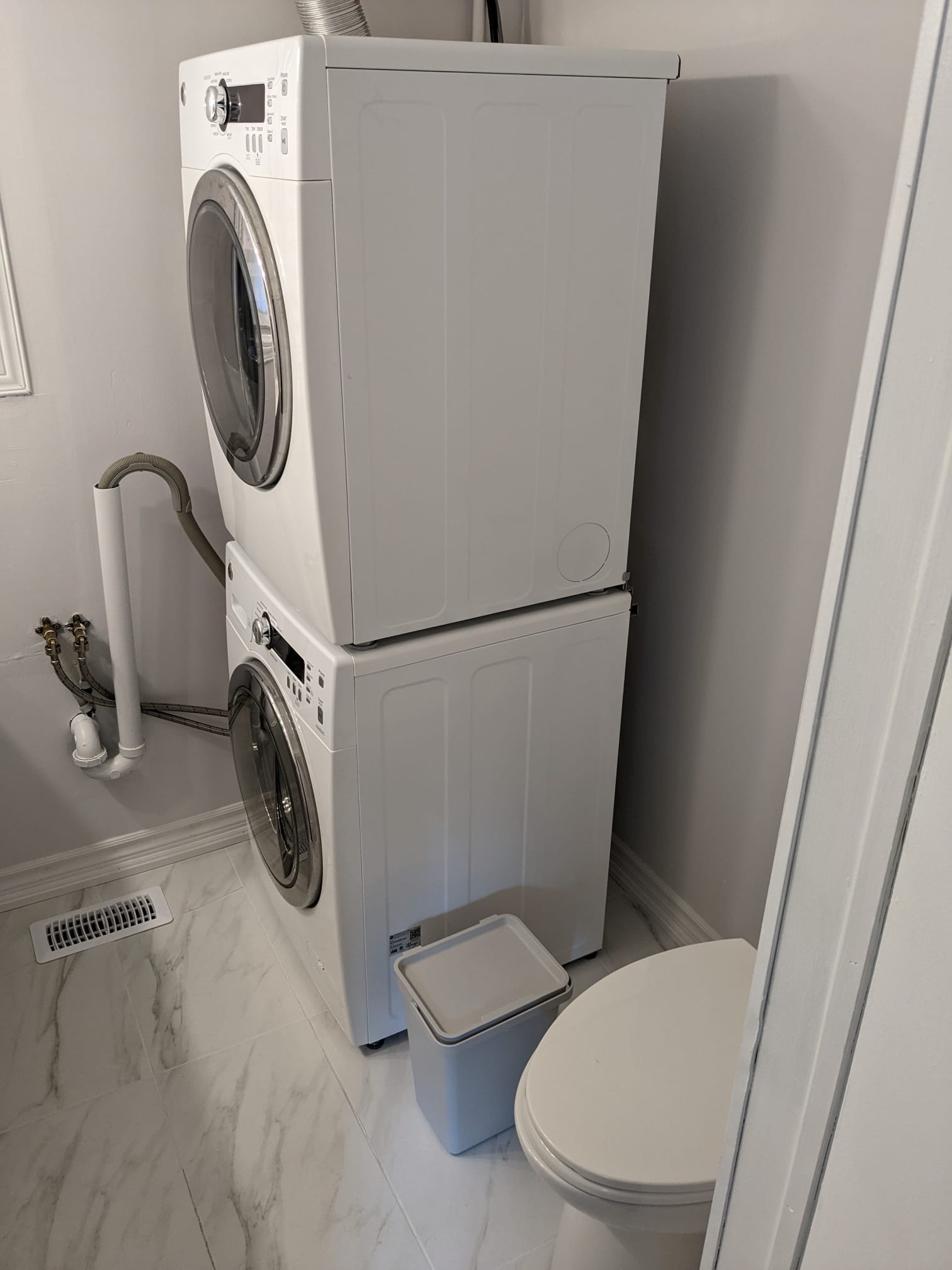 This gorgeous 1200 sq ft unit features own separate and private entrance, hardwood and ceramic floors throughout, bright Kitchen, fridge & stove, 4 piece bathroom, powder bathroom, large living/dining room, 3 spacious bedrooms with ample closets, central air conditioning and private court yard. It includes 2 parking spaces and private laundry facilities with brand new washer & dryer.